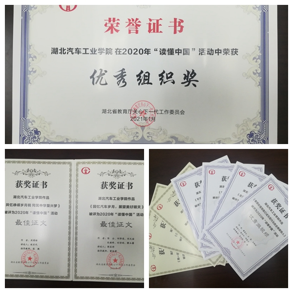本网讯(文/葛学东)在2020年“读懂中国”活动中,我校关工委和离退休工作处密切协作,共同推出了微视频、征文等优秀作品10件参加活动。最终,10件作品均获奖,我校关工委获优秀组织奖。