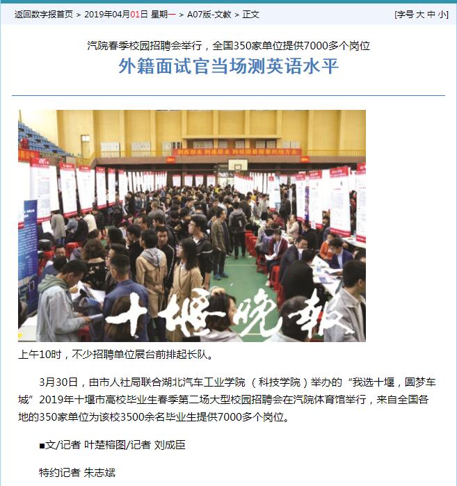 【十堰晚报】汽院春季校园招聘会举行,全国350家单位提供7000多个岗位-国产精品永久久久久久久久久|91精品无码国产在线观看一区|久久人爽爽人爽爽ąV无码自慰|最新无码国模国产在线|2020最新无码国产在线观看