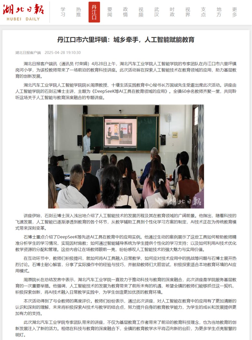 【湖北日报】丹江口市六里坪镇:城乡牵手,人工智能赋能教育
